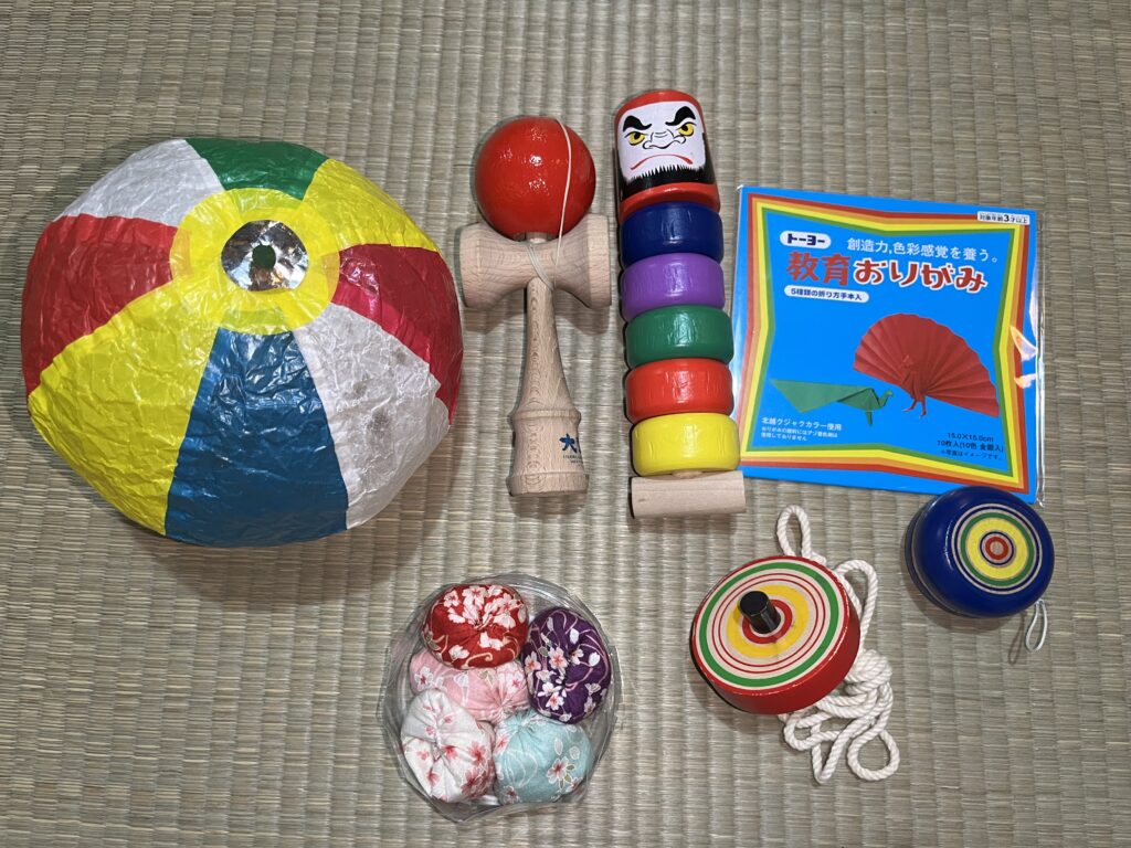 Yesterday, we welcomed wonderful families visiting from Israel and Singapore. With a wide variety of traditional Japanese toys, children can easily discover their favorite play activities here. One family especially enjoyed the classic Japanese card game “Bōzu Mekuri,” and the room was filled with laughter. (Amy joined the fun as well!)