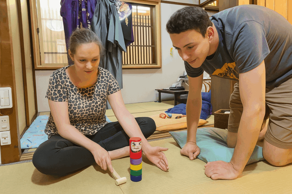 We were so happy to welcome a lovely family from the UK to AriHana Kyoto! The little boy, who loves cars, enjoyed folding origami cars and trucks, showing his biggest smile. His baby sister was cheerful all the time, rolling around the room and reaching for toys with joy.