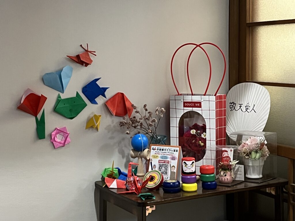In addition to Daruma Otoshi, we offer a wide range of traditional Japanese toys, including kendama, koma (spinning tops), and more. Visitors can also enjoy hands-on cultural activities such as our origami experience and Japanese calligraphy experience, making AriHana Kyoto an ideal stop for families, couples, and solo travelers who want to explore Japanese culture in a fun and interactive way.