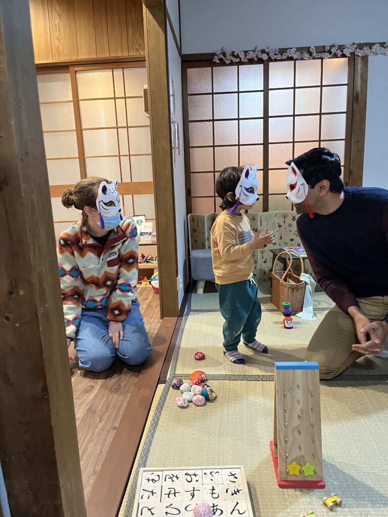 Yesterday, we welcomed a wonderful family visiting from the United States. Their 0-year-old baby girl happily explored our traditional Japanese house, feeling relaxed and at home. Meanwhile, her parents enjoyed classic Japanese games such as kendama, daruma-otoshi, and origami. Their two hours with us flew by in no time!