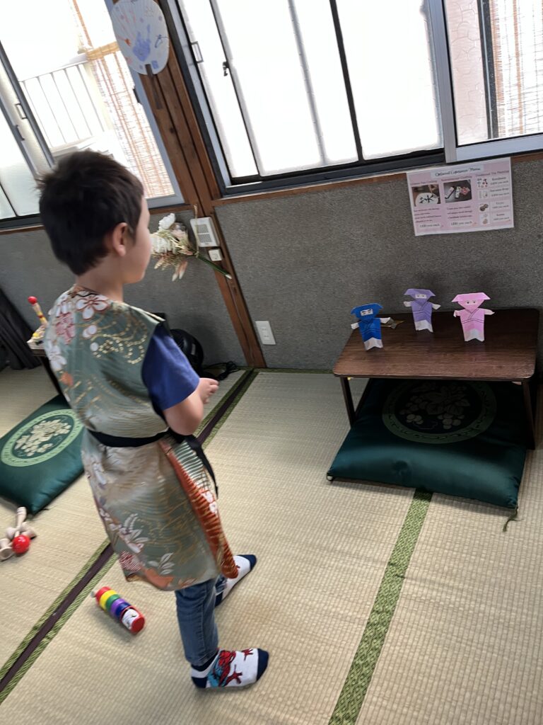 オリジナルの忍者人形と手裏剣で、息子さんは夢中になって遊び、お母様も「本当に楽しい場所でした」と、とても楽しかったと話してくれました。アリハナ京都での時間が、京都での素敵な思い出になったことを、私たちも大変嬉しく思います。